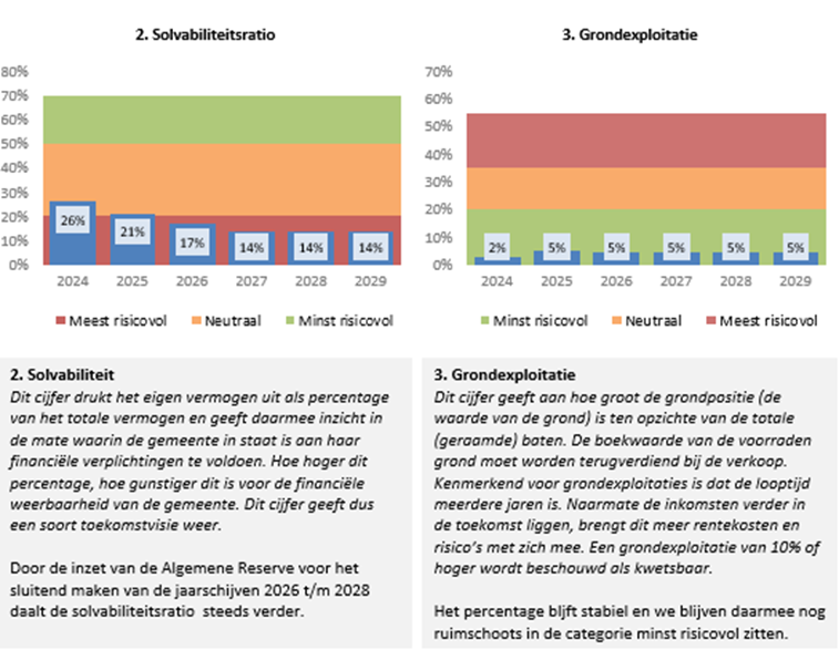 Op basis van de programmabegroting 2026 is de ratio van ons incidentele weerstandsvermogen 1,8 en daarmee “Ruim voldoende”. Ten opzichte van de jaarrekening 2024 is de ratio dus iets gestegen. Indien de onttrekking van € 2,1 miljoen uit de algemene reserve voor de sluitende begroting 2026 verwerkt wordt in de weerstandsratio dan komt deze uit op 1,6. In het onderdeel Algemene Reserve van het hoofdstuk Financiële positie is het verwachte verloop van de weerstandratio opgenomen.